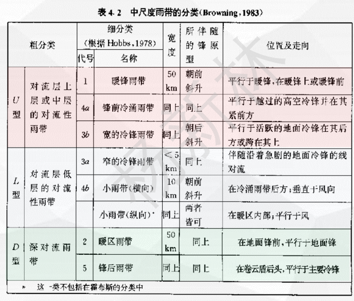锋面附近的中尺度雨带分类