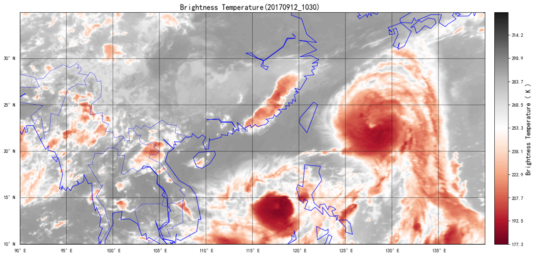 plt.title(‘Brightness Temperature(20170912_1030) ‘,fontweight=’bold’, fontsize=16)